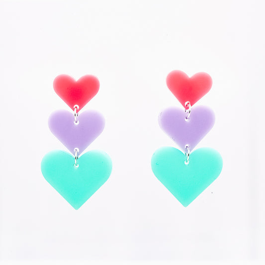 Triple Heart Earrings - Bubblegum Pink, Lavender & Teal